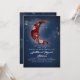 Las invitaciones de aniversario de boda celestes azul marino y rojo borgoña presentan un cielo nocturno estrellado y la romántica luna creciente floral