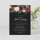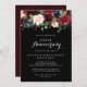 Esta invitación de aniversario de bodas de 50 años con diseño botánico negro rústico es perfecta para una celebración clásica de matrimonio. El diseño presenta flores radiantes y elegantes pintadas a mano en burgundy, rojo, navy, azul y blush sobre un fondo negro, inspirando belleza natural.