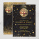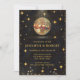 ¿Te gustan los 70, 80? ¿Te gustan las bolas de discoteca? La Invitación de Boda con Bolas de Discoteca Elegantes de Brillo Negro y Dorado cuenta con una bola de discoteca dorada, estrellas retro doradas y brillo (todos los diseños con efecto digital de oro falso). Esta elegante invitación de boda retro es perfecta para una boda elegante, divertida y temática.