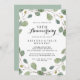 Esta invitación de aniversario de bodas de eucalipto verde es perfecta para una sencilla celebración de aniversario de matrimonio. El diseño cuenta con ramas y hojas de eucalipto verde botánico dibujadas a mano".