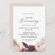Esta invitación de bodas de paja de pampas boho para el 50 aniversario de boda es perfecta para una fiesta de aniversario de verano. El diseño de acuarela floral presenta flores bohemias de color burdeos y rosa polvoriento con ramitas de hierba de pampas neutra y hojas de palma secas doradas.