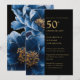 Invitación Bodas de Oro Floral Azul Moderno Negro y Dorado 50