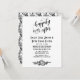Estas invitaciones únicas y elegantes seguramente harán una declaración cuando invites a tus invitados a celebrar tu boda. Una fuente de letra moderna y sinuosa se lee "felices para siempre" en la parte superior. Debajo, tus datos personales están representados en una fuente art déco en mayúsculas. Esto se puede cambiar a cualquier fuente que prefieras, si deseas algo diferente. El texto de la tarjeta está orientado a un evento después del gran día, sin embargo, el texto se puede modificar fácilmente para adaptarlo a tus necesidades. Una sola peonía de acuarela en simples tonos blancos y negros se ha colocado en la parte inferior. Para complementar la audaz apariencia, la parte posterior ha sido cubierta con un patrón en blanco y negro de peonías pintadas a la acuarela. Esto también se puede cambiar. De hecho, todas las capas se agregaron por separado y se dejaron sin bloquear para darte tanto control de diseño como desees. Pero por favor no dudes en hacernos saber si tienes solicitudes especiales para piezas coincidentes o si necesitas ayuda para personalizar. // 99 //