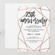 Estas elegantes invitaciones para la fiesta del 25 aniversario de boda presentan un patrón geométrico de oro rosa falso sobre un fondo blanco, con tipografía negra moderna.
