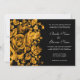 Invitación de boda elegante en negro y dorado con corazones y rosas. Ideal para bodas medievales, temas de boda renacentistas o de jardín de rosas. Estilo rústico chic, patrón floral, grandmillennial, granny chic