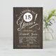 Invitación de aniversario de 15 años con patrón de madera marrón oscuro. ¡Salud por 15 años! Perfecto para una celebración elegante.