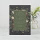 Presentamos nuestra encantadora invitación de boda de invierno, donde la elegancia atemporal se une a la belleza de la temporada. El rico fondo negro carbón, suavemente desgastado con acentos blancos, establece un tono cautivador para su día especial. En el área de texto de verde oscuro salvia, los detalles de su boda resaltan, rodeados por un delicado marco de crema que añade un toque de refinamiento. Abrace el espíritu del invierno con un impresionante marco de exuberante vegetación, que incluye acebo adornado con ricas bayas rojas, muérdago con sus delicadas bayas blancas y el atractivo atemporal del pino verde. Creado por Simply Farmhouse Press.