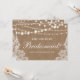 Bodas Rústicas Luces de Cadena de Arpillera Encaje ¿Serás Mi Dama de Honor Tarjeta