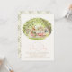 Esta caprichosa invitación de cumpleaños para picnic y fiestas de té incluye animales de bosque como una ardilla, un conejito, una nutria y un erizo en picnic junto al río debajo de los árboles. En el reverso, el fondo es de color crema con motivos botánicos. Personalízalo para tus necesidades. Puedes encontrar más productos de conejito en mi tienda.