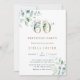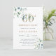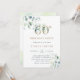Esta invitación a la fiesta de cumpleaños número 60 incluye eucalipto de color agua pintada y hojas verdes con números de oro botánico.