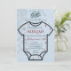 Traje de cuerpo azul Aqiqah para bebé niño Invitación musulmana islámica para celebrar el nacimiento de un bebé de acuerdo con la tradición islámica según la sunnah de Rasulullah shalallahu a'layhi wa salam. Esta invitación luce perfecta y hermosa con la sagrada bismillah en la parte superior del diseño y la adición de un traje de cuerpo y un elemento de amor. Este diseño también se personaliza y personaliza fácilmente cambiando el texto del nombre y la dirección.