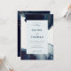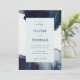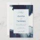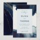 Una plantilla de invitación a la boda oceánica con una acuarela abstracta pintada con olas azul marino con efecto de tinta dorada (el oro es un efecto digital, ¡no un Relieve metalizado real!). Elegante y elegante, sencillo y moderno, es una encantadora elección para una boda de otoño o invierno en la playa, o simplemente un otoño, invierno o cualquier boda de tiempo para una pareja que ama el azul marino y el diseño moderno.