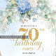 Invitación Bohemia de Cumpleaños 70 Floral Azul Do