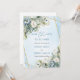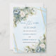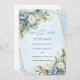 Invitación Bohemias Pastel Azul White Gold Peonys Save Date