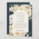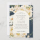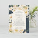 La invitación a la boda en tonos tierra azul marina incluye una flor acuarela floral con flores blancas y flores cálidas amarillas y botánicas. La paleta de tonos tierra natural lo hace genial para bodas de primavera de verano, bodas boho, bodas de otoño y bodas rústicos.
