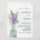 Invitación a bodas boho, con follaje verde salado, lavanda y eucalipto dispuestos en una botella vintage y pintados con acuarela. Obra de arte original y única creada en el estudio para su día especial. La caligrafía elegante está en negro. Al contrario, puede agregar todos los detalles de su boda.