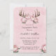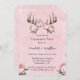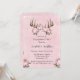 Un romántico ilustracion acuarela de un promontorio de ciervo de estilo bohemio, adornado con elegancia con peonías rosas blandas en flor. Los ángulos rústicos y templados añaden un encanto natural, mientras que el delicado arreglo floral evoca una estética boda de ensueño. El fondo color rosa claro de la acuarela realza la suavidad y la elegancia de la pieza, convirtiéndola en una inspiración perfecta para bodas de moda boho, decoración de novias o celebraciones de inspiración natural.