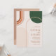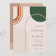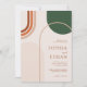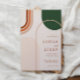 Invitación bohemia boho moderna con formas de arco en terracota, óxido, naranja quemado y tonos verde oscuro y esmeralda. Colección: https://www.zazzle.com/collections/boho_arch_abstract_wedding_collection-119061662657911589