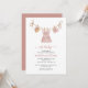 Oh, tan dulces ropas de bebé cuelgan de un tendedero en esta invitación a la ducha de bebé. Ropa de coñac, zapatos y un gorra con flores pequeñas y corbatas. Esta encantadora invitación tiene tipografía de escritura con las palabras "oh baby in muted pink" (oh bebé en rosa apagado) así como escritura para el nombre de la mamá.