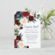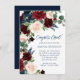 Invitación Boho Blooms | Azul de la Marina Rusa y Rojo Borgoñ