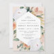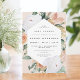 La elegante invitación floral a la ducha de bebé neutra de género presenta un alargado marco hexagonal de flores acuáticas y follaje en tonos boho desérticos de melocotón, blanco, marfil y verde sabio. Personalice los detalles de la ducha de bebé con letras modernas.