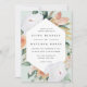 Elegante invitación a la boda floral con detalles bodas en letras modernas, enmarcada en un marco geométrico en forma de rombo de flores de color pastel acuático y follaje botánico en tonos tierra inspirados en el desierto de melocotón, verde salvia, blanco y marfil.