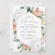 La elegante invitación al bautismo floral presenta un marco hexagonal alargado de flores acuáticas y follaje en tonos boho desérticos de melocotón, blanco, marfil y verde sabio. Personalice con su ceremonia en la iglesia y bautizando detalles fiestas con letras modernas.