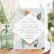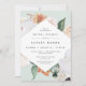 La elegante invitación al brunch floral de la ducha de novia incluye un marco en forma de rombo de flores acuáticas y follaje en tonos boho desérticos de melocotón, blanco, marfil y verde sabio. Personaliza con tus detalles del brunch de novia.