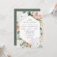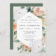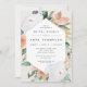 La elegante invitación al brunch floral de la ducha de novia incluye un alargado marco hexagonal de flores acuáticas y follaje en tonos boho desérticos de melocotón, blanco, marfil y verde sabio. Personalice los detalles del brunch con letras modernas.