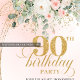 Invitación Boho Blush Floral Gold Frame Minimal 90th Birthday