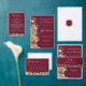 Esta elegante tarjeta de invitación a la boda burdeos de vacaciones de bodas combina maravillosamente el encanto de los florales de invierno con la elegancia atemporal de la borgoña. Son una invitación sincera para que tus seres queridos sean testigos de la magia de tu historia de amor que se desarrolla.