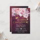 Invitación Boho Boho Floral Feathers Burgundy Red