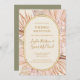 Esta invitación de recepción de boda botánica boho | verde oliva es perfecta para su recepción de boda elegante rústica floral, verde, melocotón, rosa dorado. El diseño presenta un marco dorado o ramo con hierba de pampas rosa moderna, salvia simple, marfil, hoja de palma de champán y vegetación de playa clásica. Las flores pueden incluir rosa y orquídea. El diseño es ideal para una boda de terracota vintage clásica, beige, óxido, invierno, primavera, otoño. Por favor, busque otros artículos de papelería de boda que coincidan o coordinen en el resto de la colección.