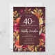 Invitación Boho Cae Borgoña Floral Script 40 cumpleaños