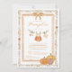 Celebra tu ducha de bebé de otoño con esta encantadora invitación de "una calabaza dulce está en camino". Con flores de otoño pintadas a mano, calabazas de acuarela suaves y un tendedero con artículos de aseo para bebés, es perfecto para una ducha con motivos de chica. Ideal para reuniones rústicas, de boho o rurales durante la temporada de calabaza. Fácilmente personaliza con tus detalles para una celebración cálida e invitante.