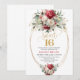 Invitación Boho Chic Red White Gold Floral Sweet 16 Birthday
