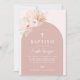 Chicas florales de arco rosado bautizan o bautizan a los adoradores. Una moderna invitación a la cristiandad o al bautismo para tu día especial de niñas.