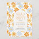 El Boho Daisy Open House Grad Party Invitation presenta un divertido, naranja, amarillo y azul patrón de margarita, dibujado a mano con un aire esquemático. Consulte la colección para ver otros elementos.