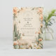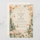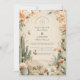 Un romántico diseño boda inspirado en el desierto, con cactus acuarelas, flores de melocotón suave, mariposas y un paisaje montañoso silencioso. Perfecto para bodas boho, suroeste y rústico al aire libre.