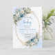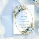 Invitación Boho Dusty Blue Flowers Gold Script Baby Shower