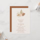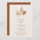 Hermosa invitación de casamiento en otoño con un diseño de arreglos florales de Boho y textos y acentos de terracota.