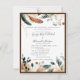 Impresionante invitación bohemia con una pluma pintada a mano y una acuarela de eucalipto en tonos marrones, grises y teales. Personalizado con detalles bodas. ¡Esta bonita invitación marca un tono encantador para tu evento!