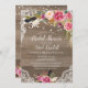 Esta bonita invitación tiene un fondo rústico de madera oscura y bonitas flores acuarelas con encajes y cordones. Perfecto para una invitación de boda, ducha de novia, ducha de bebé, celebración de cumpleaños o barbacoa.