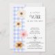 Invitación Boho Floral Blossom Blue Gingham Baby Shower