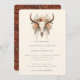 Invitación a la Boho Floral Skull Western Wedding - Celebra tu amor con un toque de encanto rústico y elegancia bohemia con nuestra invitación a la Boho Floral Skull Western Wedding. Esta cautivadora invitación mezcla el atractivo nebuloso de un cráneo de vaca con la suave belleza de las flores de color tierra, creando una sorprendente yuxtaposición que captura perfectamente la esencia de tu unión única. Al frente de la invitación, un cráneo de vaca adornado con belleza ocupa el centro del escenario, simbolizando fuerza, resiliencia y el espíritu del salvaje oeste. A su alrededor, un delicado surtido de flores de color tierra que le dan un toque suave y romántico a un entorno escarpado. Pasar la invitación a un segundo plano revela una deliciosa sorpresa: la espalda se elabora con un falso cuero grabado en relieve, evocando la autenticidad escarpada de la frontera occidental. Este elemento táctil añade profundidad y textura, invitando a sus invitados a experimentar la esencia del oeste salvaje desde el momento en que reciben su invitación. Con su mezcla de estilo bohemio y encanto occidental, nuestra Invitación a la Boho Floral Skull Western Wedding marca el tono para una inolvidable celebración del amor, la unidad y la belleza intemporal de la naturaleza.