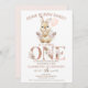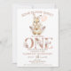 Boho Palabra Floral Conejo Conejo Conejo Conejo de Conejo de Aniversario 1er Invitación Boho chica de primer cumpleaños con un falso Relieve metalizado de oro rosa con varios arreglos florales en tonos naturales con pasto pampas, un lindo conejo conejo y globo. Ideal para los que buscan una invitación moderna de inspiración bohemia para su primer cumpleaños.