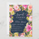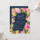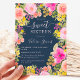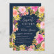 Una bonito Boho de flores silvestres jardín Sweet 16 cumpleaños invitación con ilustracion floral pintado a mano en rosa, amarillo, melocotón, flores y rosas de prados salvajes, eucalipto verde salado y vegetación sobre azul marino oscuro editable. Perfecto para el verano, fiesta de cumpleaños al aire libre en el jardín.