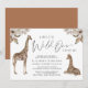 Sencilla invitación a la ducha de bebé, de género neutro y simple, con acuarelas de una madre y una jirafa de bebé, crema tropical y flores de terracota y hojas de helecho. "A Sweet Little Wild One" se escribe en una mezcla de tipografía única y escritura contemporánea. Puede especificar el género ("por ejemplo, "está en camino") si lo desea.