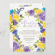 Disfrute del delicado encanto de nuestra Invitación al brunch del día de nuestra madre Boho lavender amarillo floral, con una moderna y delicada acuarela pintada a mano, audaz púrpura, lavanda, flores amarillas y hojas verdes, con un elegante tipo de letra de guión de broche