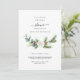 Invite a sus seres queridos con esta invitación a la ducha de novias de escritura minimalista. Diseñada con un elegante follaje verde y un moderno guión escrito a mano, esta tarjeta es perfecta para celebraciones rústicas, de bosques o Navidades. Una elección sencilla pero elegante para una ducha de novia intemporal.